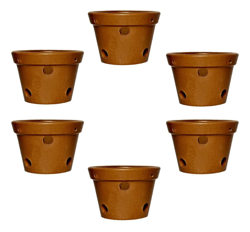 Vaso Cerâmica Barro Para Orquídeas Kit Com 6